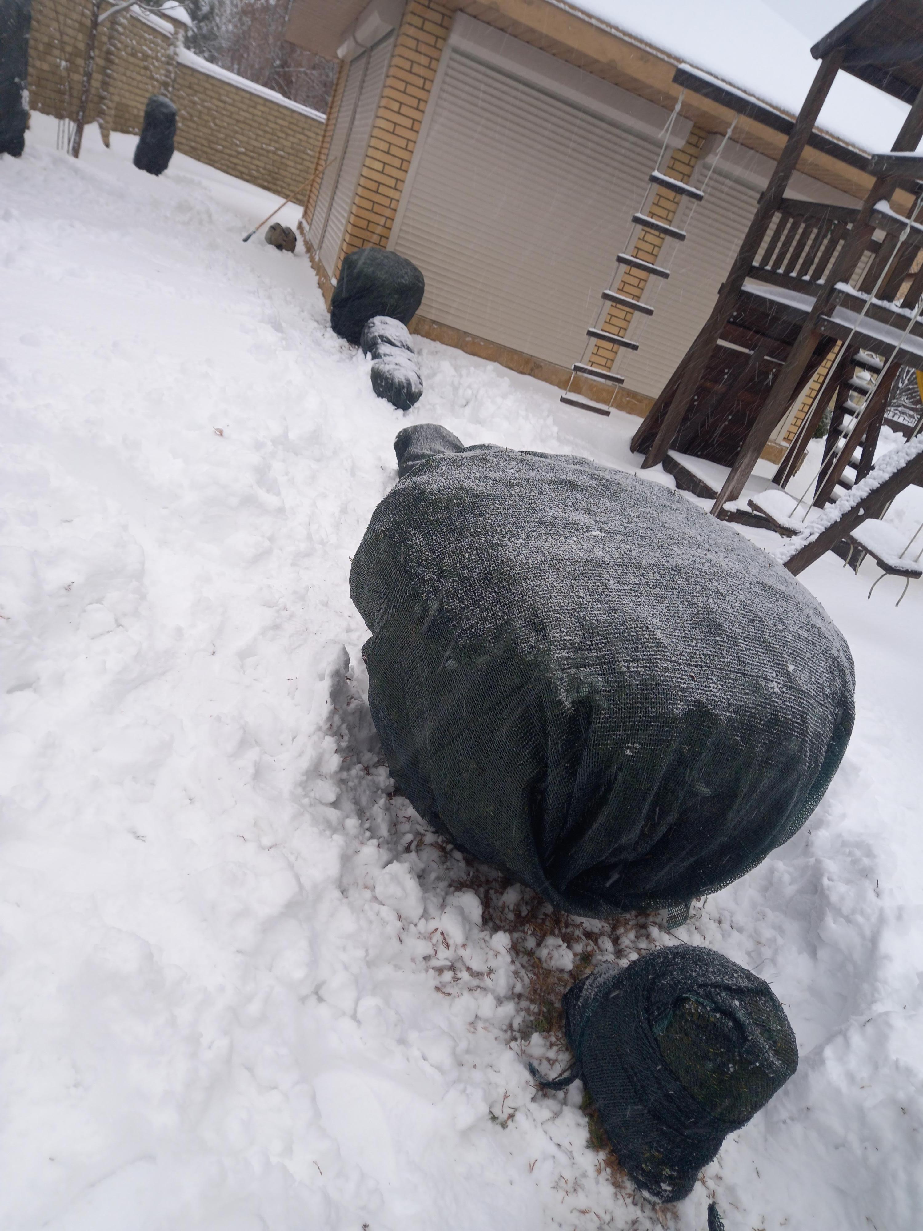 Использование каркасов: Для защиты от снега, который может сломать ветви, рекомендуется использовать деревянные или металлические каркасы, устанавливаемые вокруг кустарников и нежных растений. Дополнительно на каркас можно смонтировать агроспан или притеночную сетку.